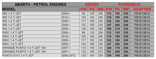 Podane w tabelach wartości przyrostu mocy i momentu obrotowego są uśrednione i mogą się różnić w zależności od wartości fabrycznych silnika i jego stanu technicznego.
