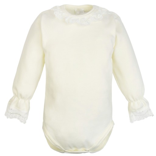 Bawełniane body z długim rękawkiem z subtelnymi wstawkami z koronki.