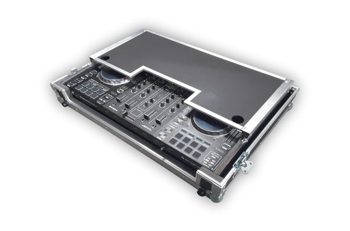 Profesjonalny flightcase na konsolę Denon PRIME 4 z wysuwaną półką na laptopa oraz kołami, wykonany z lekkiej płyty komorowej