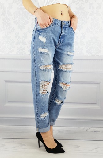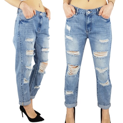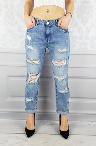 Świetne spodnie jeansowe w stylu Boyfriend z przetarciami i dziurami , posiadają średni stan. Świetne do sportowego obuwia ale idealnie też sprawdzą się w połączeniu ze szpilkami, dzięki swojej uniwersalności, pasują niemal do każdej stylizacji. Podkreśl swoje kobiece kształty! Spraw, by Twój codzienny Look był niepowtarzalny. Spodnie po obu stronach posiadają kieszenie.