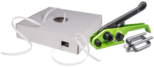 Profesjonalny system pakowania ładunków o wadze do 600,00kg. Wytrzymałość obliczono dla 5 spięć taśmą. Zestaw pakowy szeroko wykorzystywany w zakładach tartacznych, stolarskich, budowlanych, betoniarskich, gospodarstwach rolnych, sadowniczych i ogrodniczych. Wszędzie tam gdzie istnieje konieczność wiązania materiałów, które wymagają stabilizacji w trakcie ich transportu lub składowania.
