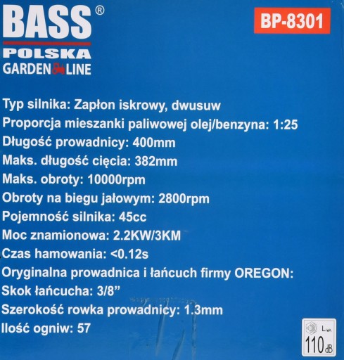 - Oryginalna prowadnica i łańcuch firmy BASS POLSKA