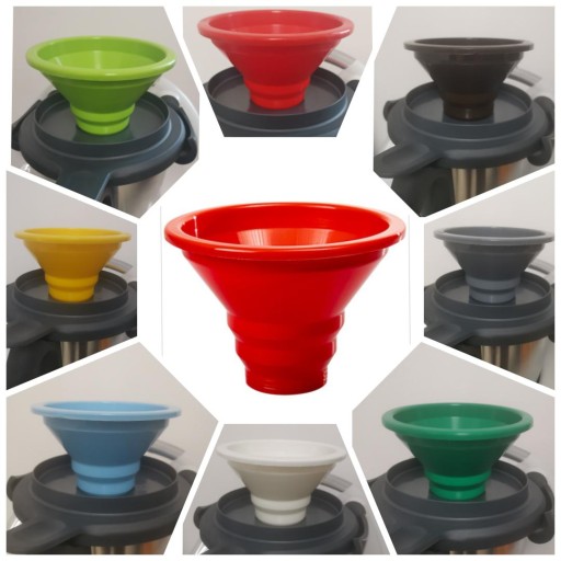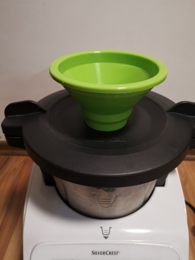Poniżej realne zdjęcia, pokazujące rozmiary lejka na tle Thermomix'a i MMC.