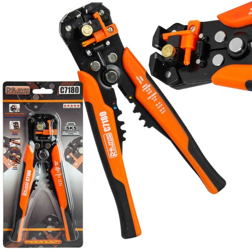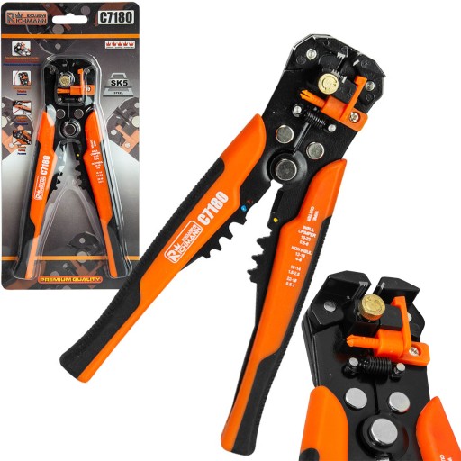 Szczypce automatyczne do ściągania izolacji z przewodów o długości całkowitej 205 mm.