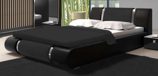 ✅Łóżko tapicerowane wykonane z ecoskóry w kolorze czarnym, przyozdobione srebrnymi listwami.