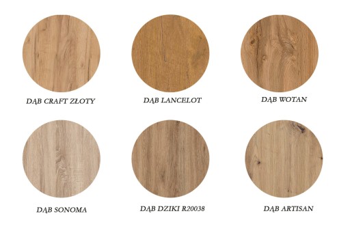 Dostępna kolorystyka blatu: Dąb Craft Złoty | Dąb Sonoma | Dąb Artisan | Dąb Dziki | Dąb Lancelot | Dąb Wotan | Dąb Hikora Naturalna | Dąb Halifax Naturalny