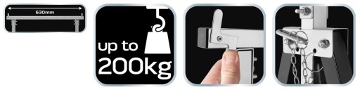 - podwójny system blokady wysokości za sprawą zawiasów klamrowych,