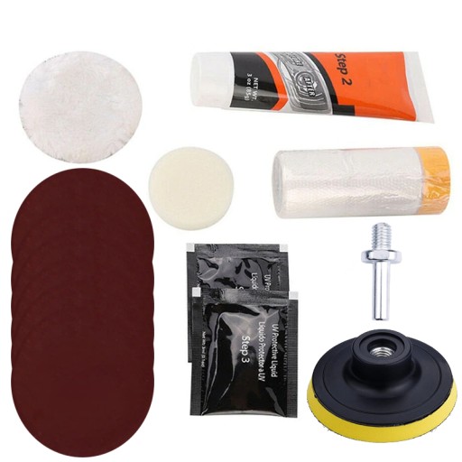 Zestaw zawiera niezbędne do regeneracji zmatowiałych reflektorów. Pozwala uzyskać bardzo dobry efekt na większości reflektorów oraz innych przedmiotów wykonanych z tworzywa takich jak: światła tylne, reflektory przyczep, okna łodzi, wizjery kasków, osłony przednie motocykli, skuterów śnieżnych itp.