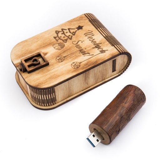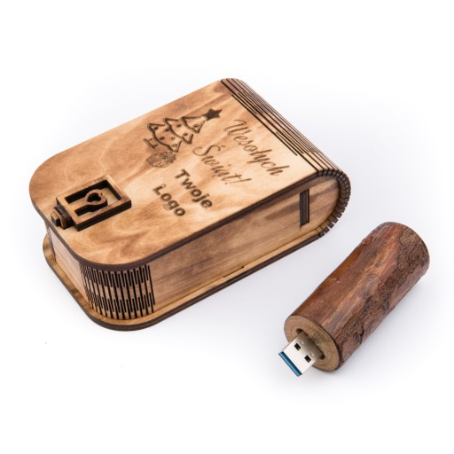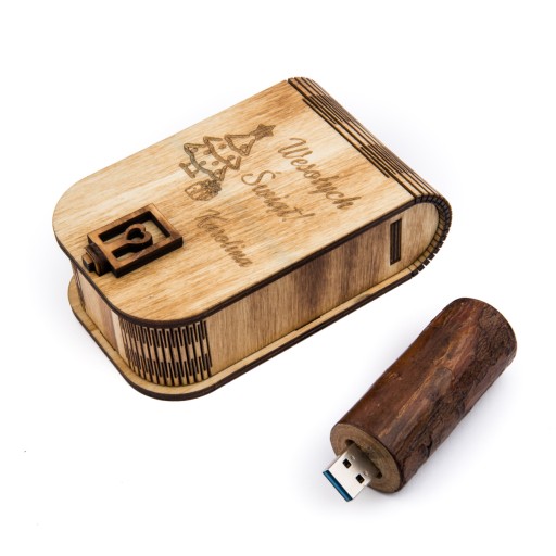 Pendrive Drewniany o pojemności 2 GB, USB 2.0 + Pudełko + Grawer Na pudełku