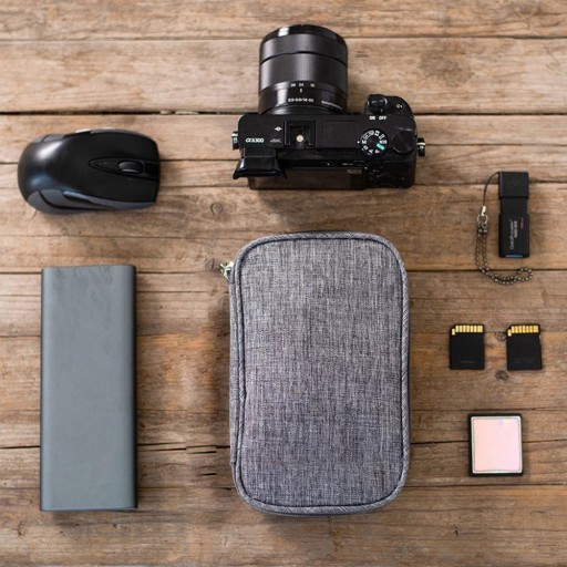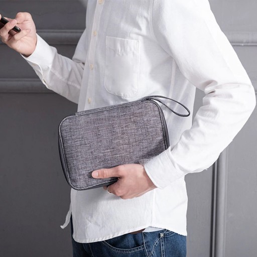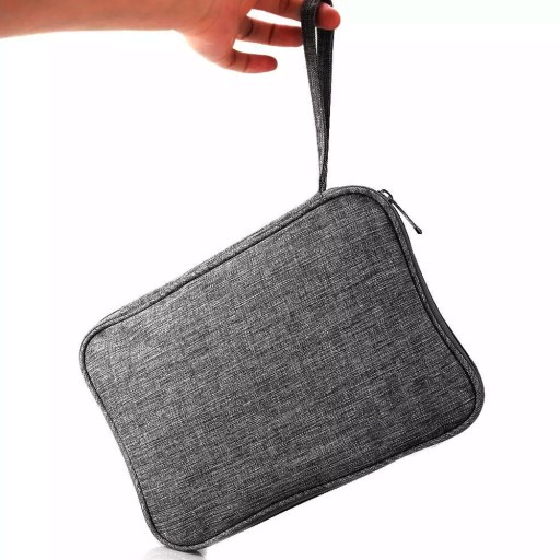 Uporządkuj i zorganizuj drobną elektronikę, w jednym, estetycznym etui, które możesz wszędzie ze sobą zabrać. Wysokiej jakości organizer na kable, przewody, karty pamięci i wszelkie inne akcesoria do urządzeń elektycznych. Produkt posiada mnóstwo schowków i zakładek służących do przechowywania niezbędnych akcesoriów. Etui na kable i elektronikę z pętelką na rękę, z szarego melanżowego materiału na suwak.