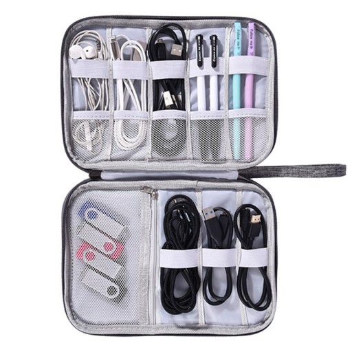 Przenośny organizer jest doskonałym dodatkiem do jasnego układu małej elektroniki. Organizer zapewni więcej miejsca do przechowywania i będziesz miał wszystkie małe urządzenia elektroniczne razem poukładane. Umieść wszystkie elementy elektroniczne w tym łatwym w użyciu organizerze i zachowaj bezpieczeństwo.