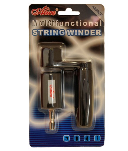Alice A009CP jest dobrze wykonana i dość masywna jak na korbkę do strun, dzięki temu daje pewność, że posłuży nam dłuższy czas. Spokojnie zmieści się w każdej kieszeni pokrowca czy futerału, a znacznie przyspieszy proces nawijania nowych strun. Dodatkowo wyposażona w końcówkę do wkrętarki dla jeszcze szybkszego działania.