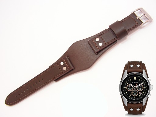 Oryginalny pasek do zegarka Fossil Coachman do modelu CH2891 wykonany ze skóry w kolorze średni brąz, gładki, matowy, na pasku przeszycia nitką w kolorze paska.