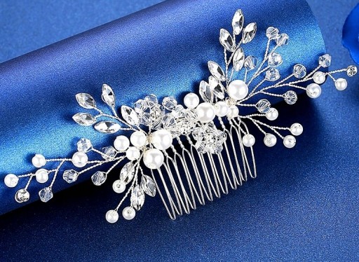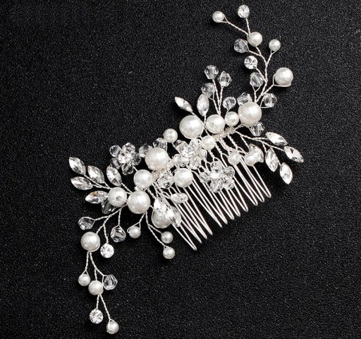 Grzebyk na ślub elegancka ozdoba do włosów srebrny kolor
