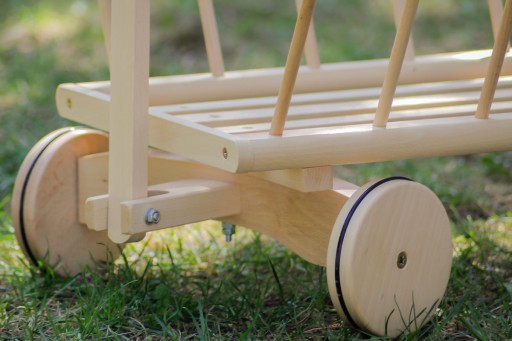 Polecamy: Duży, drewniany wózek drabiniasty – gumowane koła