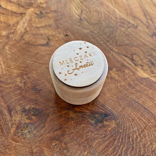 Sosnowe, okrągłe pudełko na mleczne ząbki.