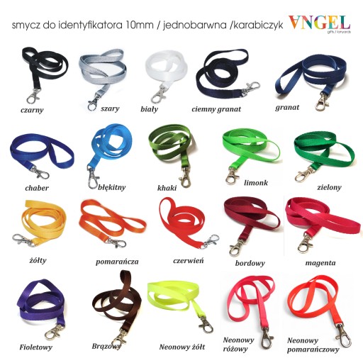 dostępna w 20 kolorach (dostępność kolorów należy potwierdzić każdorazowo) smycze wykonujemy na zamówienie wybranego koloru taśm.
