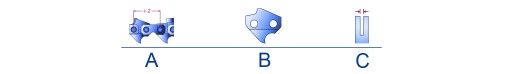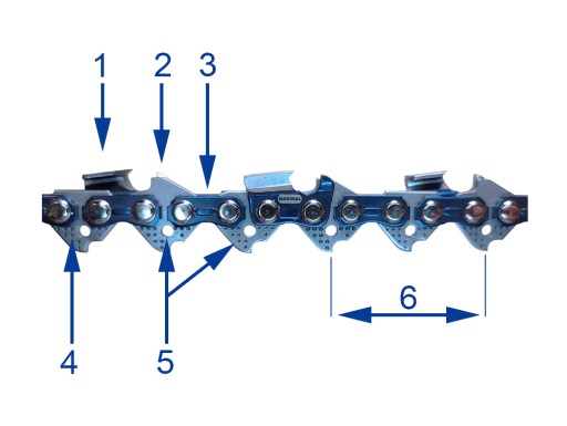 Grubość ogniw prowadzących – mierzona w części ogniwa wchodzącego do rowka prowadnicy. Standardowa grubość ogniwa dla pilarek łańcuchowych wynosi: 1.1 mm ( 0.046") | 1.3 mm (0.050") | 1.5 mm (0.058") | 1.6 mm (0,063").
