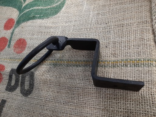Ten uchwyt wykonany ręcznie może być stosowany jako mocowanie lin lub element dekoracyjny belek, lub ścian.