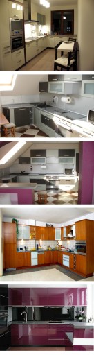 Fronty mogą być oklejane folią, lakierowane zgodnie z kolorystyką palety RAL, akrylowe, fornirowane lub drewniane. Fronty montujemy znanych polskich firm WIECH, KOZBI, PROFORM, DREWKOL, RESTOL, etc.