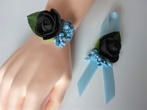 Na innej aukcji dostępne są pasujące do przypinek kotyliony na rękę dla pań.