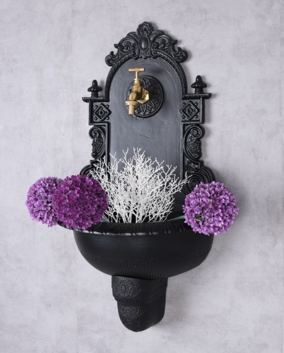 Wodnik ogrodowy jest fantastycznym elementem architektury ogrodowej. Wykonany jest w stylu renesansowym, dlatego z całą pewnością przypadnie do gustu wszystkim wielbicielom klasycznych rozwiązań. Produkt ten posiada piękny czarny kolor, który jest dość uniwersalny i w bardzo dobry sposób będzie komponował się z pozostałym wyposażeniem ogrodu. Zlew do ogrodu powstał z materiałów o najlepszych parametrach jakościowych. Wśród nich można wyszczególnić aluminium oraz mosiądz, z którego został wykonany piękny kran. Wodnik ogrodowy jest bogato stylizowany i idealnie będzie wyglądał w każdym przydomowym ogrodzie.