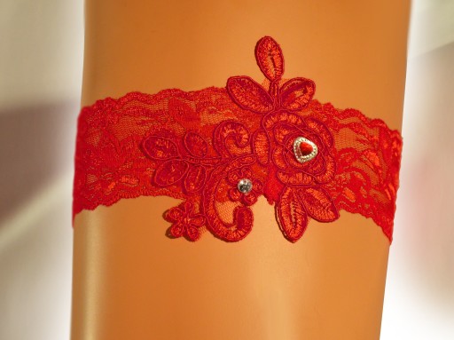Luksusowa koronkowa czerwona podwiązka na studniówkę.