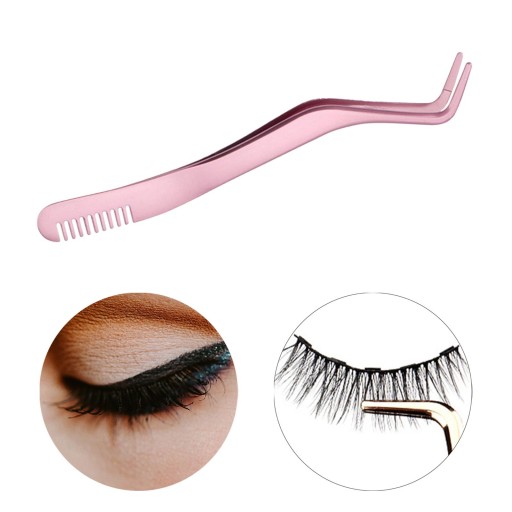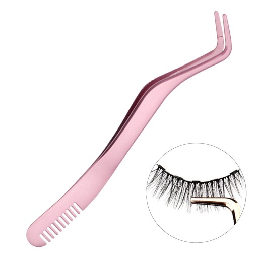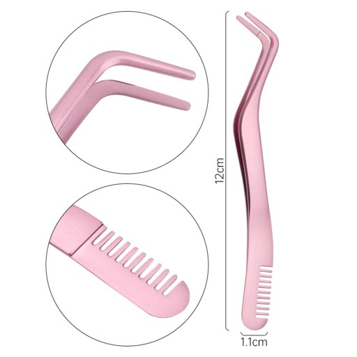 Profesjonalna pęseta do zakrzywionych rzęs 2 w 1 do samodzielnego przedłużania rzęs w kolorze różowym