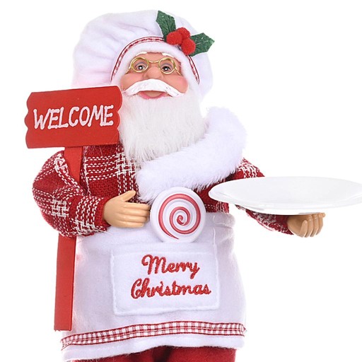 Wykonana z wysokiej jakości tkaniny stojąca lalka Świętego Mikołaja jest trwała i wytrzymała do długotrwałego użytkowania i wielokrotnego użytku.