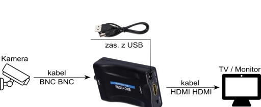 - konwertuje obraz i dźwięk z TV przemysłowej 576i