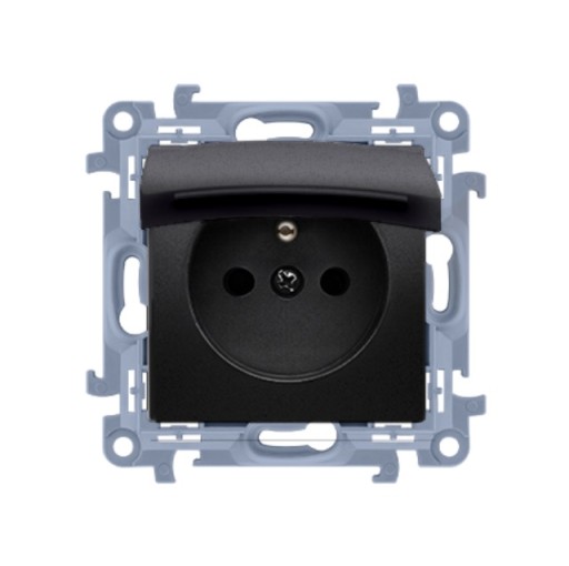 Gniazdo wtyczkowe pojedyncze do wersji IP44 - bez uszczelki - klapka w kolorze pokrywy czarny mat 16A