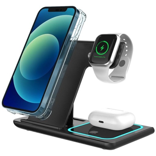 - Przenośna stacja do ładowania bezprzewodowego 3-w-1 do Apple Watch, iPhone, AirPods
