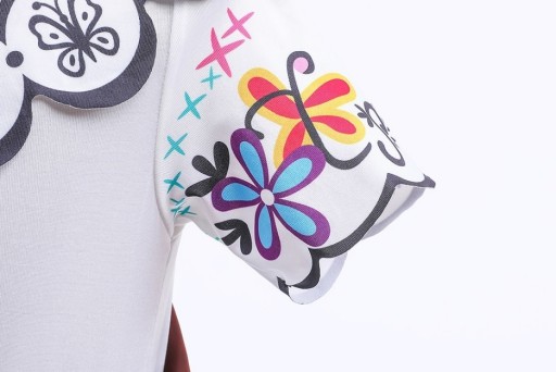 Sukienka wykonana z dokładnością i prostotą. Całość pięknie się prezentuje, a wzory na sukience sprawiają że przebranie jest wyjątkowe.