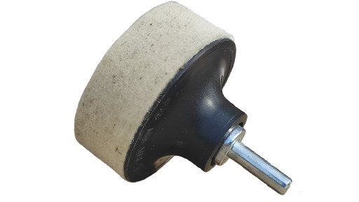 Filc polerski na dysku polerskim o średnicy 75 mm i grubości filcu 25 mm, przeznaczony do polerowania: