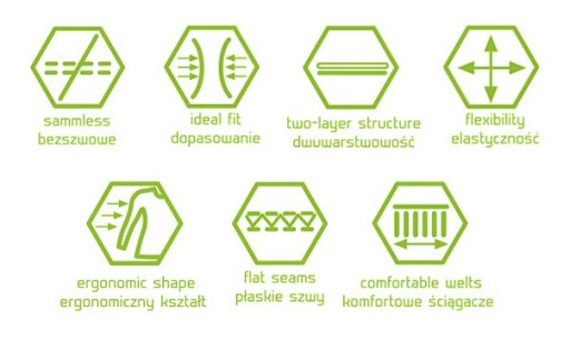 - Komfort użytkowania: płaskie szwy, brak szwów w korpusie, idealne przyleganie do ciała, nieskrępowane ruchy, brak metek wewnątrz