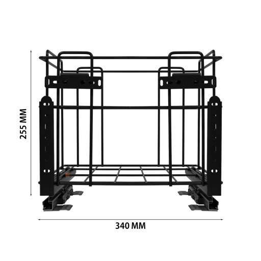 - Produkt zawiera: Stelaż do koszy, Komplet prowadnic pełnego wysuwu z cichym domykiem, 2x pojemnik 24 L