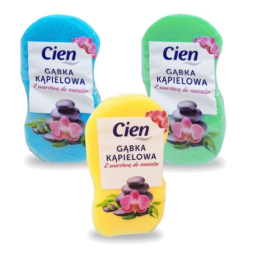 Wysokiej jakości gąbka do kąpieli renomowanej marki CIEN ze specjalną warstwą do masażu.