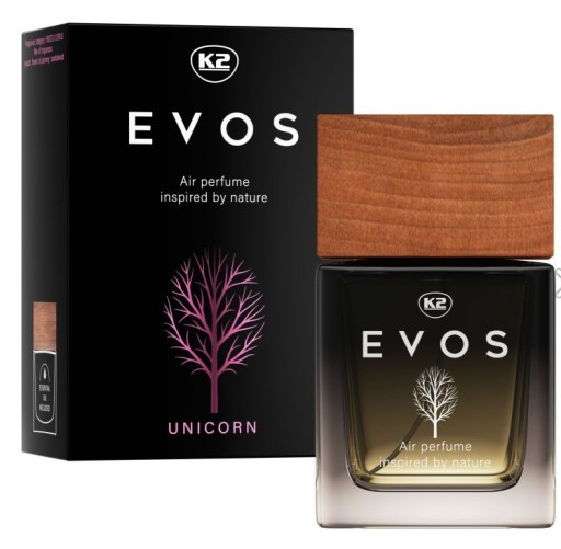 Perfumy do samochodu K2 EVOS to inspirowana naturą, niezwykła kompozycja wyjątkowych nut zapachowych, zaprojektowana z myślą o wnętrzach nowoczesnych aut.
