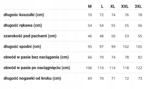 Rozmiar 3XL - 90-120kg / 180-210cm