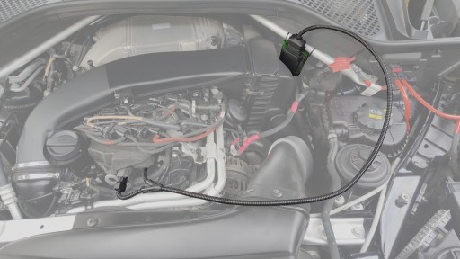 Po wpięciu wiązki we wtyczki pod maską drugą część podłączamy do chipa za pomocą wodoszczelnego złącza zatrzaskowego pokazanego na zdjęciu. Całość połączenia jest bardzo wysokiej jakości, dokładnie dopasowane aby chronić elektronikę przed przepięciami.