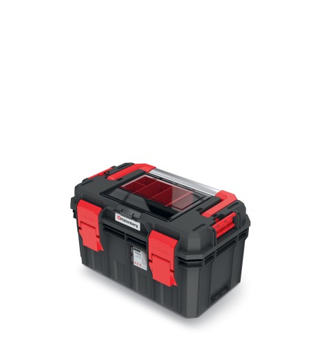 Nowość na rynku w dziedzinie skrzynek narzędziowych. Wewnątrz znajdziesz sporo miejsca do przechowywania narzędzi średniej wielkości. Całą konstrukcję odporną na uszkodzenia uzupełniają solidne metalowe zatrzaski. Pojemnik jest niesamowicie wytrzymały, dlatego możesz go zabrać ze sobą np. na plac budowy.