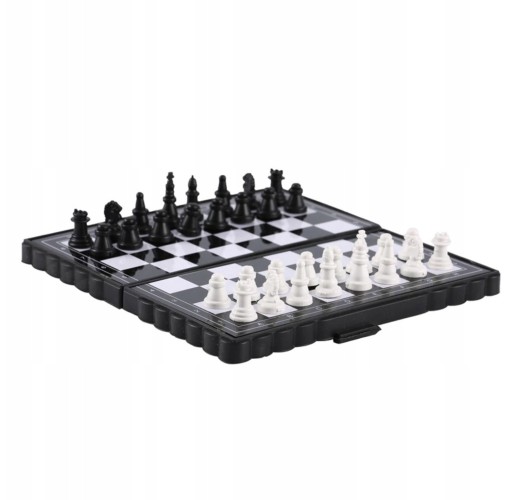 Królewska gra jak nazywają szachy posiada niewielką budowę. Plansza jest łamana na dwie równe sobie części, dzięki czemu w środku schowasz pionki. Łamana plansza sprawia, że będzie zajmowała ona jeszcze mniej miejsca w twojej torebce. Należy zaznaczyć, że plansza jest magnetyczna sprawia to, że zagrasz w swoją ulubioną grę dosłownie wszędzie.