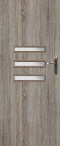 Przedmiotem aukcji są nowoczesne drzwi o drewnianej konstrukcji ramowej.