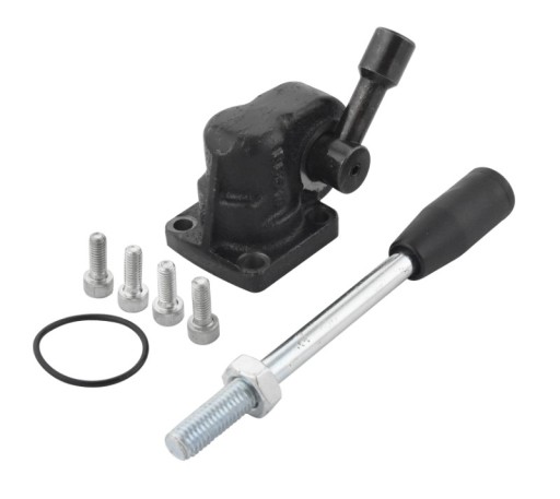 Przedni kołpak rozdzielacza RBS-10 stosowany w wózkach widłowych RAK Suchedniów i GPW. Dźwignia pracuje w układzie ukośnym. Kołpak przytwierdzany 4 śrubami.