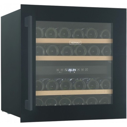 Chłodziarka do wina (winiarka) do zabudowy KERNAU KBW 361 DB, dwustrefowa, szerokość 59 cm, pojemność na 36 butelek 0,75l, sterowanie elektroniczne, oświetleniem LED, poziom hałasu 41 dB, pracuje w klasie energetycznej G