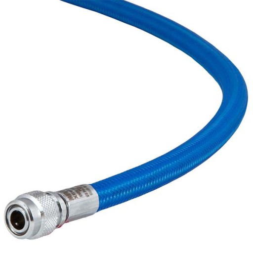 Wąż Miflex XTR do inflatora w kolorze czarnym posiada opatentowany podwójny oplot nylonowy, dzięki któremu wąż ten cechuje się większą wytrzymałością.