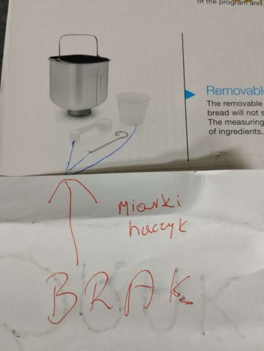 - brak akcesoriów: miarki, łyżki do odmierzania i haczyka w zestawie - bez wpływu na użytkowanie - przedstawione na zdjęciach rzeczywistych
