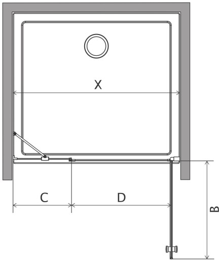 - Szerokość gabarytowa drzwi*: 1000 mm (Szerokość gabarytowa liczona jest od ściany do zewnętrznej części profilu montażowego. Oś tafli szkła kabiny, w zależności od modelu, jest zawsze cofnięta o około 1-3cm względem pierwotnej szerokości. Prosimy zwrócić uwagę na ten fakt przy chęci montażu kabiny bezpośrednio na płytkach z zastosowaniem odpływu liniowego o szerokości odpowiadającej szerokości kabiny. W takiej sytuacji zalecane jest montowanie odpływu liniowego krótszego o co najmniej 5cm niż pierwotna szerokość kabiny.)