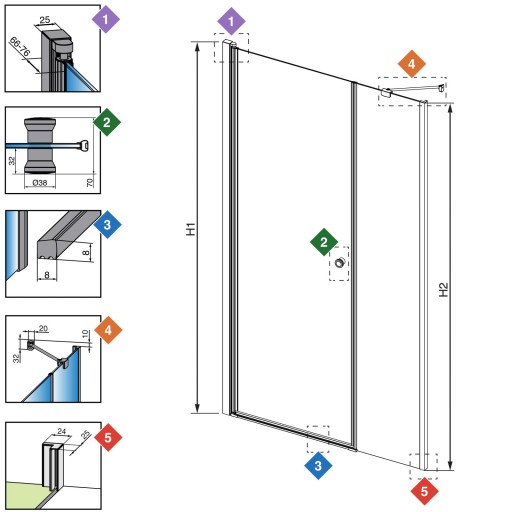 - Wysokość drzwi (H1): 1970 mm