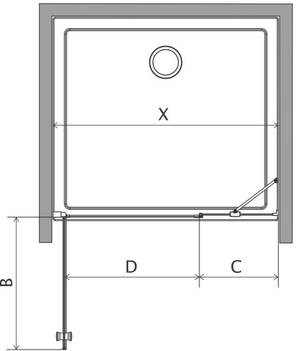 - Szerokość gabarytowa drzwi*: 1000 mm (Szerokość gabarytowa liczona jest od ściany do zewnętrznej części profilu montażowego. Oś tafli szkła kabiny, w zależności od modelu, jest zawsze cofnięta o około 1-3cm względem pierwotnej szerokości. Prosimy zwrócić uwagę na ten fakt przy chęci montażu kabiny bezpośrednio na płytkach z zastosowaniem odpływu liniowego o szerokości odpowiadającej szerokości kabiny. W takiej sytuacji zalecane jest montowanie odpływu liniowego krótszego o co najmniej 5cm niż pierwotna szerokość kabiny.)